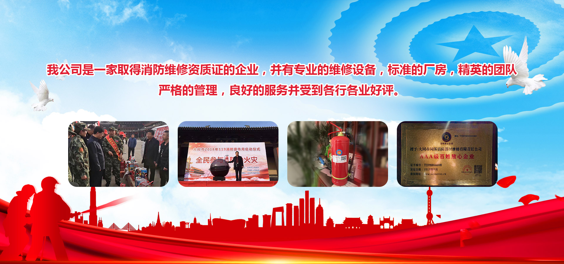 大同市同渾消防器材維修有限責(zé)任公司,位于大同市同泉路389號(hào),始建于2000年,是公安部消防局定點(diǎn)銷(xiāo)售和維修的企業(yè),歷經(jīng)多年的創(chuàng)建、發(fā)展和拼搏,現(xiàn)有多家消防器材廠商供應(yīng)我公司,并有現(xiàn)代化維修設(shè)備,標(biāo)準(zhǔn)的廠房,嚴(yán)格的管理,優(yōu)良的設(shè)備,良好的服務(wù)并受到各行各業(yè)的好評(píng)??偨?jīng)理劉國(guó)玉嚴(yán)格管理,嚴(yán)格要求,精益求精,認(rèn)真負(fù)責(zé),帶領(lǐng)團(tuán)隊(duì)熱烈歡迎各界朋友顧客光臨。